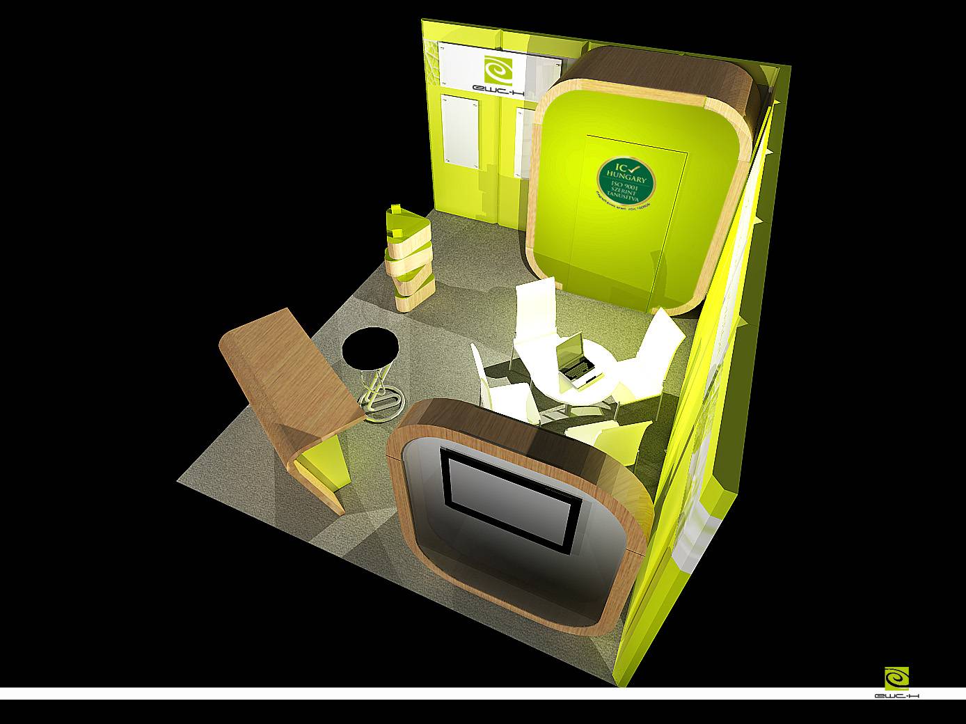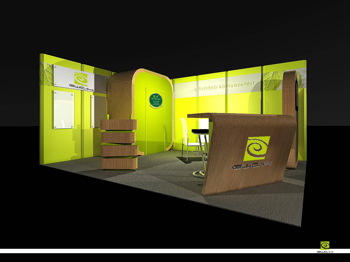 A moduláris elemekből kialakított stand színeiben és anyagában is hűen tükrözi a cég üzenetét: A