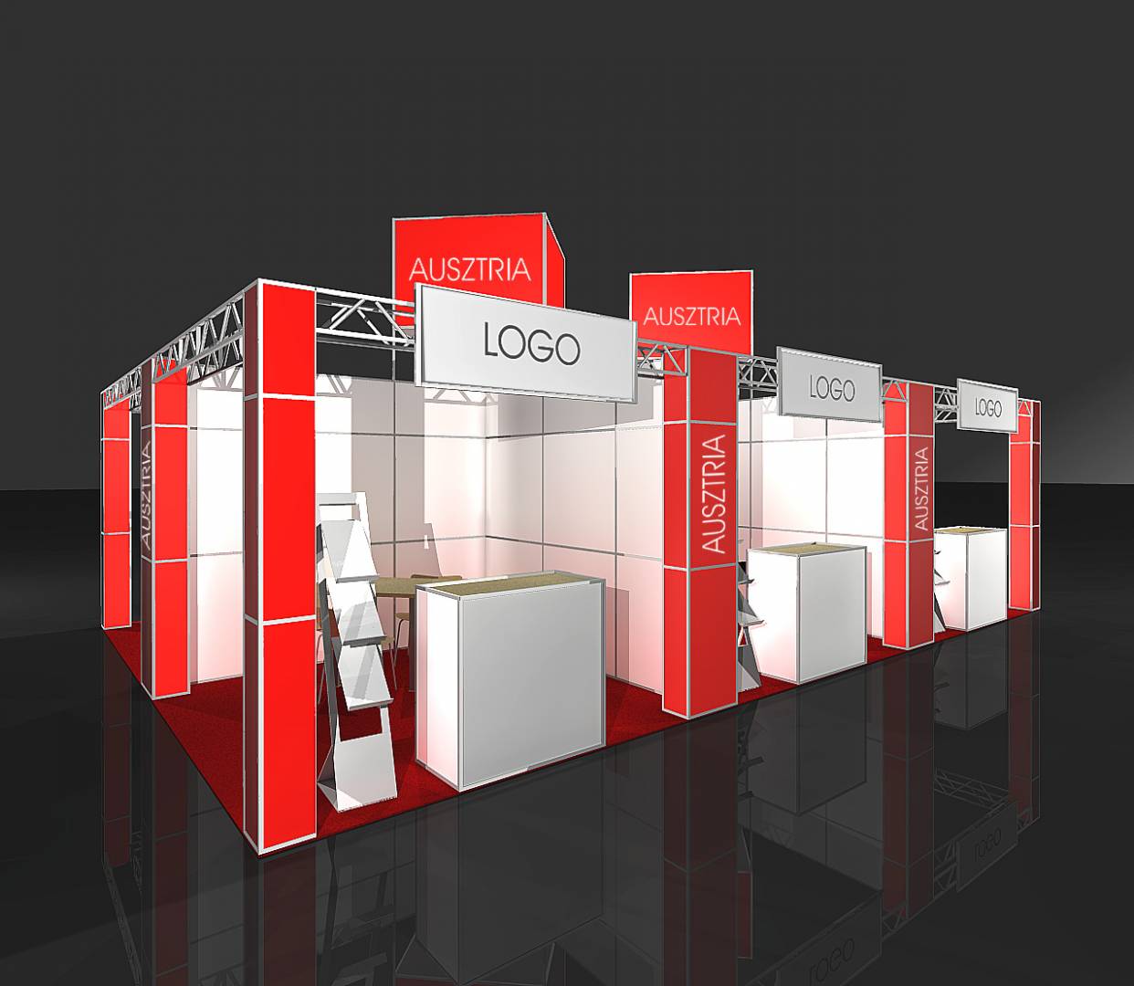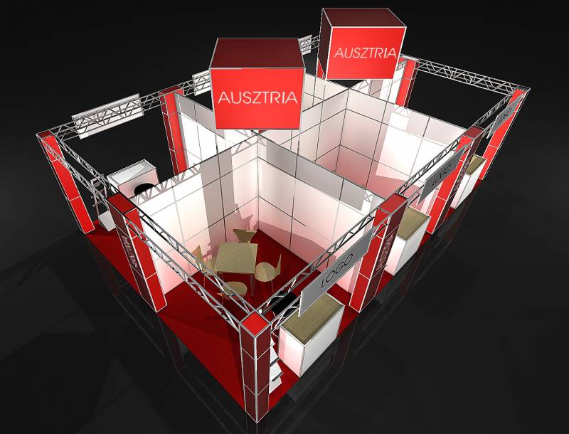 A bemutatott stand alapterülete 9 m x 6 m.